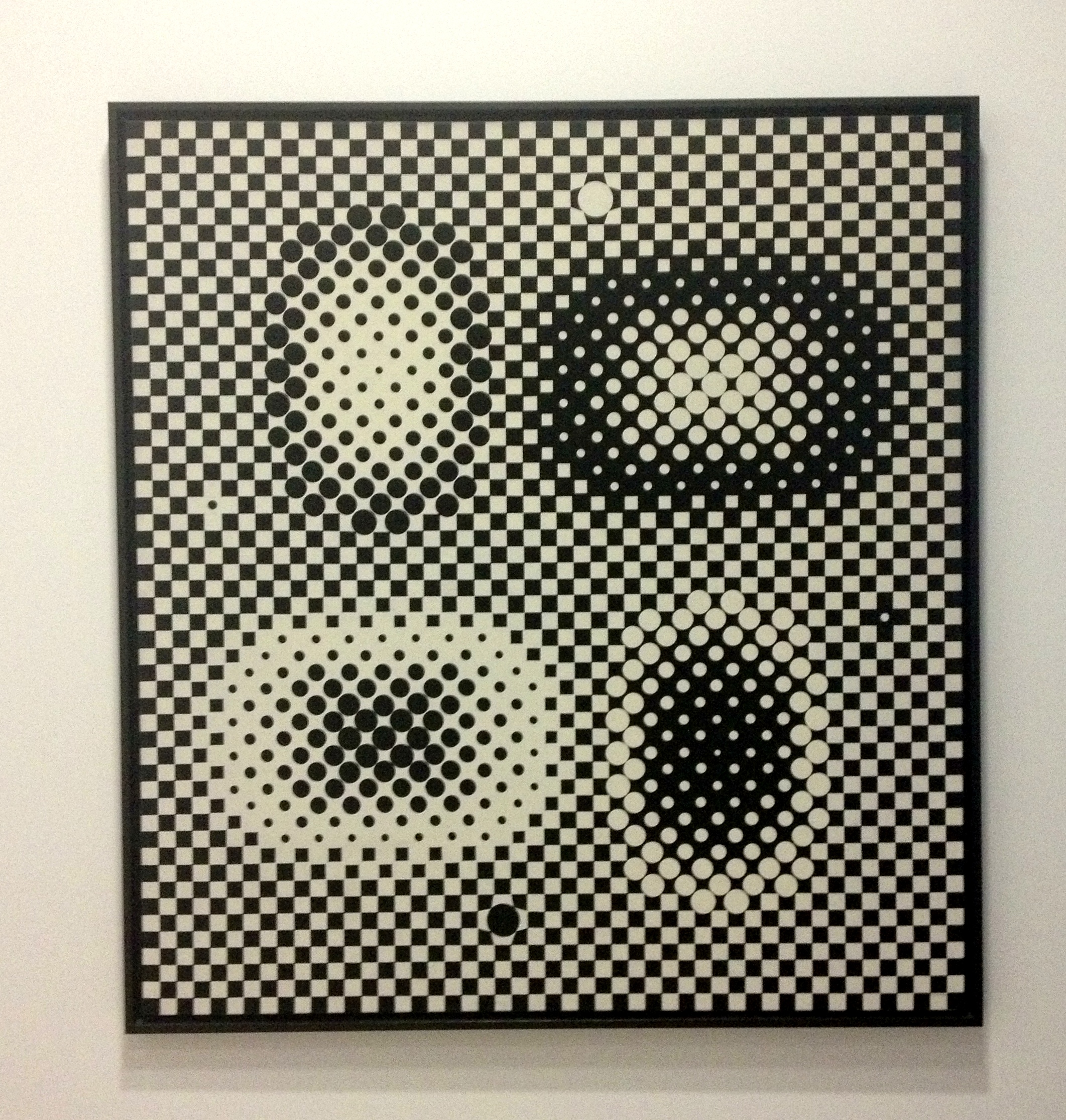 j’ai pu admirer plusieurs oeuvres de Vasarely, l’artiste qui à la côte en ce moment sur la toile. Les crocheteuses se lancent des défis plaid Vasarely,