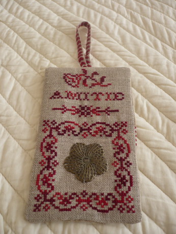 Pour ma part, j’ai envoyé ceci : un clic-clac magique, tiré du livre “Cartonnage brodé” de Sophie Delaborde et Sylvie Castellano :