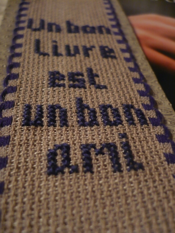 Chaque membre de cette famille réclame un marque-page. Soit parce qu’il a perdu celui que j’avais brodé avec amour, soit parce que le modèle ne lui plait plus….