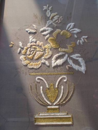 La pose des paillettes à l’aide du crochet, tout un programme grace à cette école “Lesage” qui en fait rêver plus d’une d’entre nous- Ta broderie est magnifique, une très belle vasque- Merci à toi
