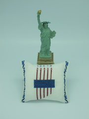 Très joli, ce coussinet à épingles… Manque plus que les épingles avec, pour tête, la statue de la Liberté !