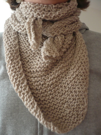 Apès avoir tricoté des écharpes dont la dernière qui m’occupa tout l’été, et qui est désormais plus autour du cou de ma fille que du mien, j’ai décidé de copier la mercière du Comptoir (article 3 septembre 2009) et de tricoter une pointe dont elle donne le mode d’emploi. Le but avoué était d’apprendre à faire des augmentations. J’ai