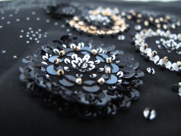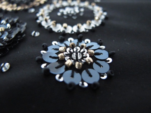 Cette fois-ci j’ai appris à broder à l’aiguille les perles et les paillettes.